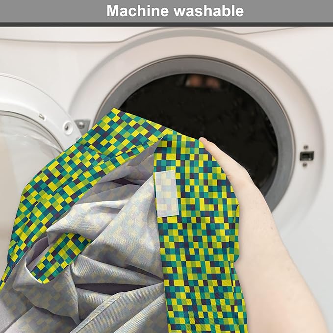 Lunarable Yellow and Blue Dog Crate Cover, Vivid Colored Squares Funky Simple Retro Style Grid Tile, Easy to Use Pet Kennel Cover for Medium Large Dogs, 36 Inch, Petrol Blue Lime Green