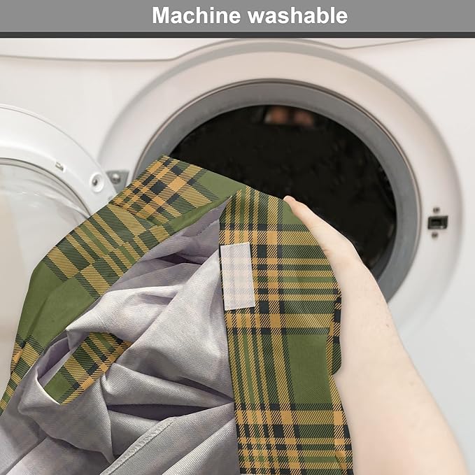 Lunarable Plaid Dog Crate Cover, Tartan Pattern in Autumn Tones Old Fashioned Design Country Illustration, Easy to Use Pet Kennel Cover for Medium Large Dogs, 36 Inch, Olive Green Mustard