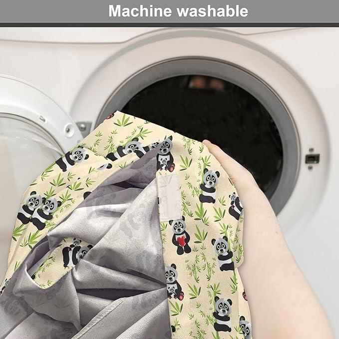 Lunarable Panda Dog Crate Cover, Asian Bear Cartoon Character Eating Leaves Branches Wildlife Animal, Easy to Use Pet Kennel Cover for Medium Large Dogs, 36 Inch, Apple Green Black and Ivory