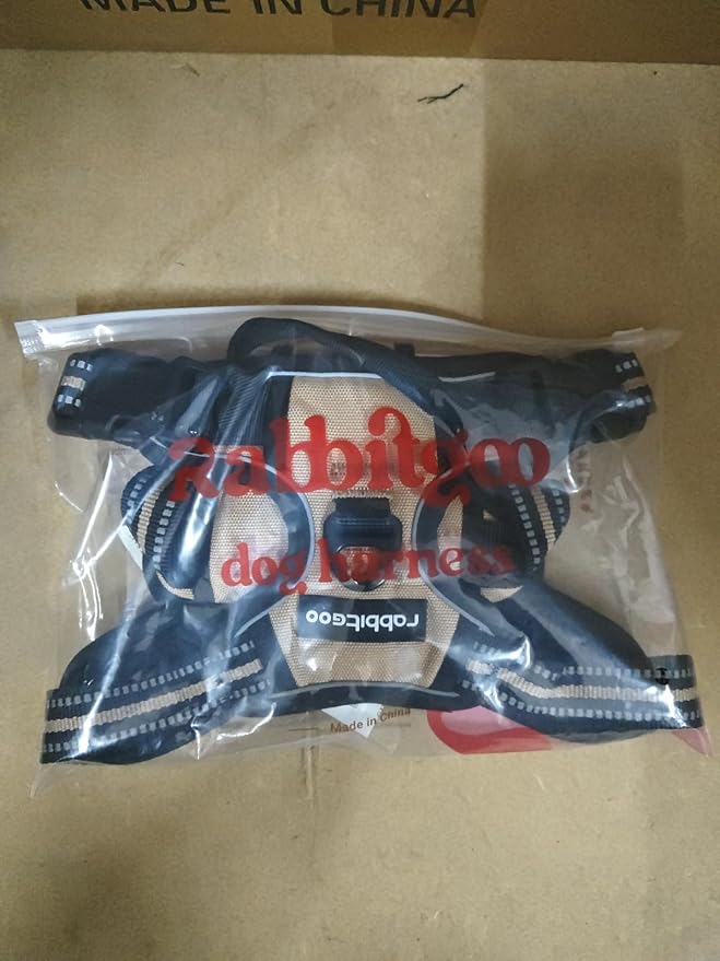 rabbitgoo Dog Harness, No-Pull Pet Harness with 2 Leash Clips, Adjustable Soft Padded Dog Vest, Reflective No-Choke Pet Oxford Vest with Easy Control Handle for Medium Dogs, Beige, M