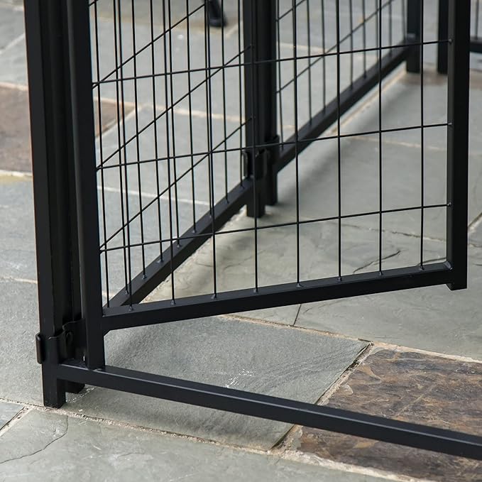 • Steel Frame: The metal railings on this outdoor dog cage are strong and sprayed for a better-quality surface. There are no sharp edges that could hurt your pets.