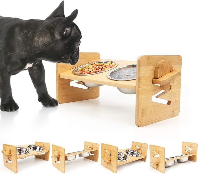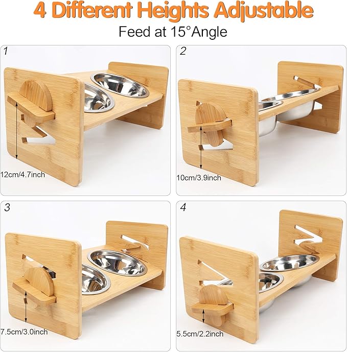 - Adjustable Elevated Bowl: You can adjust the height of the enhanced pet bowl according to dog's height and habit. Four heights can be adjusted. Perfect for cats and small dogs from different stages of childhood to adulthood, which is very convenient and practical
