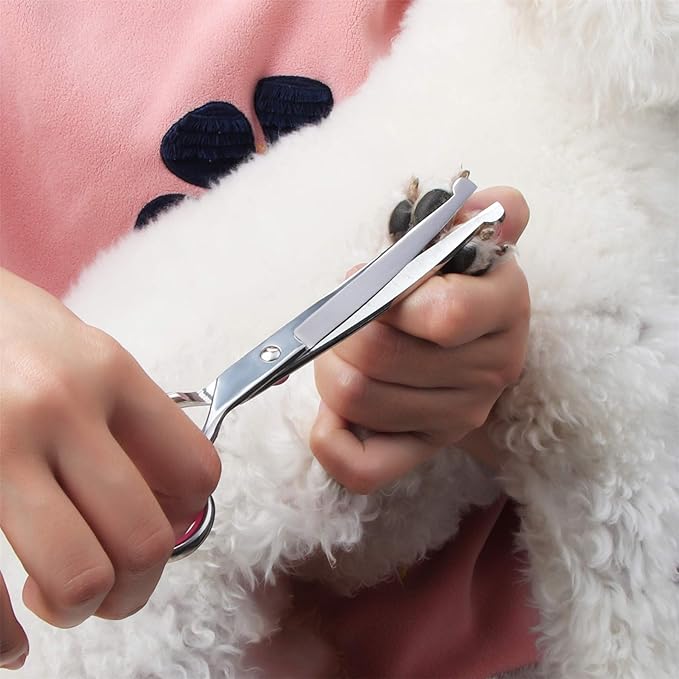 - ✔【Round Tipped Ends Design More Safety】Safety round tip that keep pets safe, never need to worry about poking your pet's skin, especially in sensitive areas such as the eyes and ears. whether professional pet groomer, hairdresser or novice, you can easily and safely use this pet scissors to trim body hair or face hair for your dogs, cats and other pets. You can become a professional beautician at home, saving time and money, never worry about accidental injury.