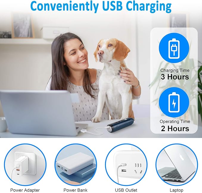 - Rechargeable & Easy to Use: This cordless dog nail grinder comes with a USB cable for charging, it can last 2 hours after a 3-hour charge. The lightweight and ergonomic body design also makes it easier to handle. Easily grind your pet’s nail anywhere.