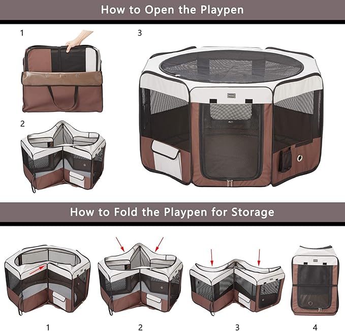 DONORO Dog Playpen 36" Portable Pet Play Pens for Small Dog/Cat/Rabbit/Chicks, Foldable Exercise Kennel Tent Crate Indoor/Outdoor Travel Camping, Removable Top/Bottom (Brown, Medium (36"x36"x20"), 8)