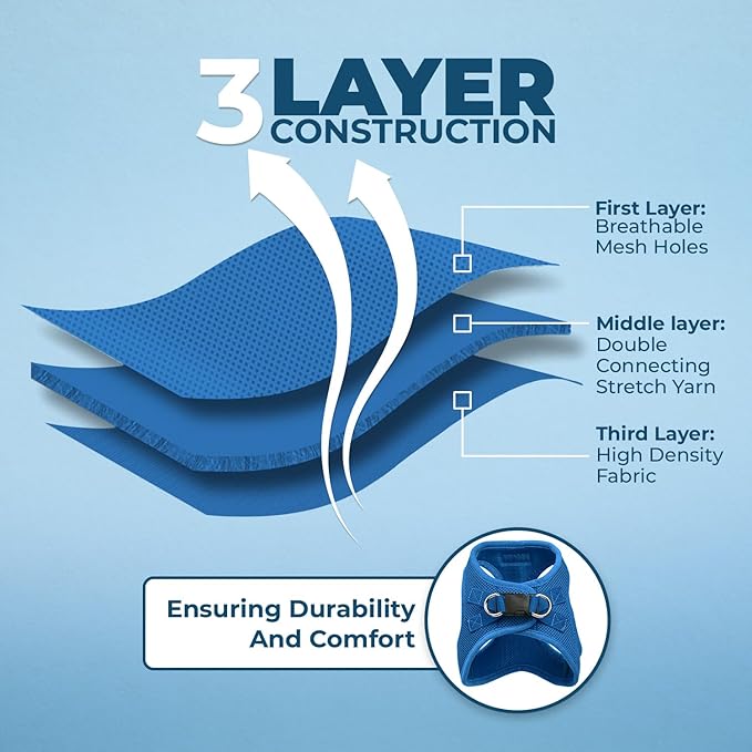 - Comfort All Year: Made with a soft and breathable air mesh, this lightweight, fast drying harness ensures maximum comfort for your pet during walks, regardless of the season