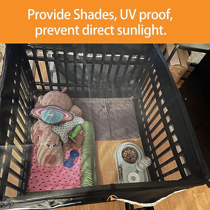 PJYuCien Dog Playpen Mesh Top Cover, Fits 36 Inch 4 Panels Regular Square Plastic Exercise Pet Pen, Adhesive Tape Connections, Black (Note: Cover Only, Fence Not Included)