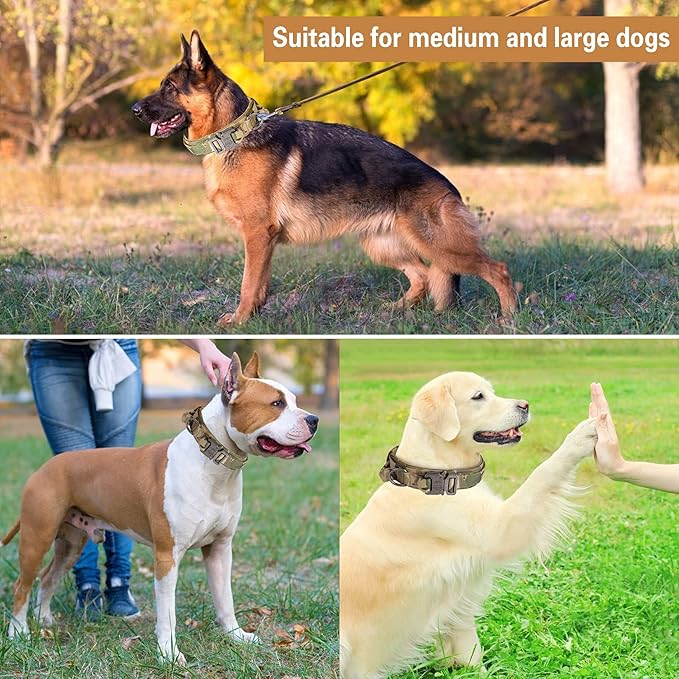 - Multiple Use Functions - tactical dog collar is great for dog training, patrolling, hiking, working, walking, running, and hunting. thick dog collar suitable for Medium and large dogs, such as: German Shepherd, Border Collie, Rottweiler, Great Dane, Doberman Pinscher, Golden Retriever, Husky, Labrador, Alaskan Malamute etc.