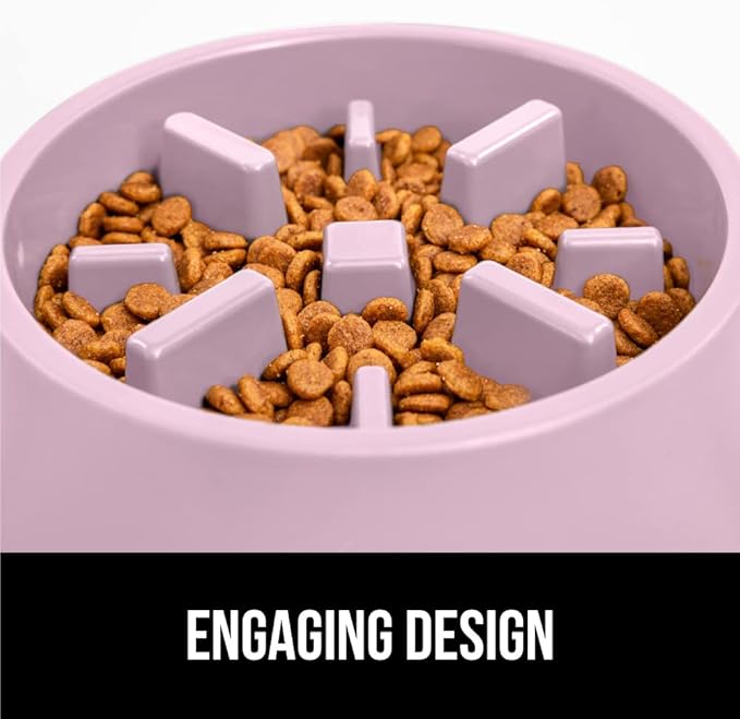 Gorilla Grip Slow Feeder Dog and Cat Bowls, Interactive Puzzle Toy for Dogs and Cats Food Training, Keeps Pets Busy and Prevents Puppy Overeating, Large, Small Breeds, 100% BPA Free, 4 Cup Pink