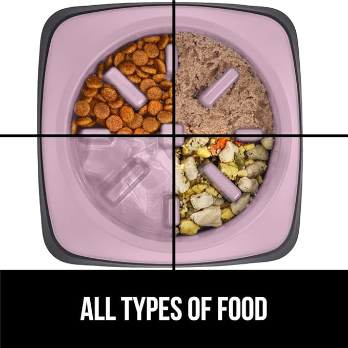 - ALL FOOD TYPES: no matter what food your pet’s diet consists of, the bowl will work to help slow down their eating; the bowl can be used with wet food, dry food, fresh food, and even water or ice; no matter what type of food you use, the bowl is dishwasher safe for an easy clean; bowl is made from safe food grade materials