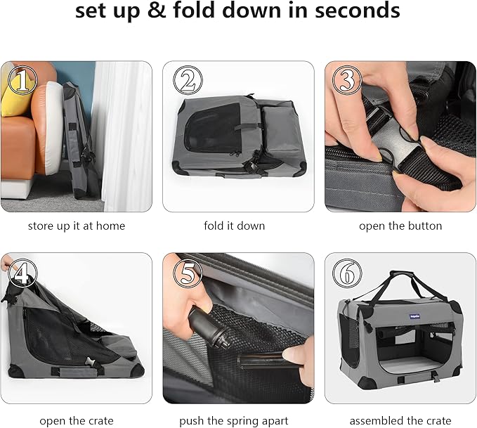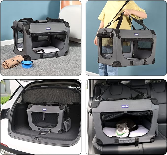 - 【Fresh air & better view】Solid mesh materials on 4 sides can encourage fresh air flow and provide a better view. Also, three doors allow your dog to come and go freely. It's a great idea to be used in the trunk to carry your pet on a happy & relaxing trip or carry your pet to see a doctor easily if you have an SUV.