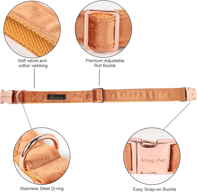 - <p><b>[ PREMIUM MATERIAL ]</b>The collar is made of <b>velvet</b>,extremely <b>soft</b> and <b>comfortable</b>, which will not harm your dog's skin. Velvet fabric is very textured and it's <b>colorfast</b>. At the same time, the inner webbing enhances the <b>durability </b>of the collar.</p>