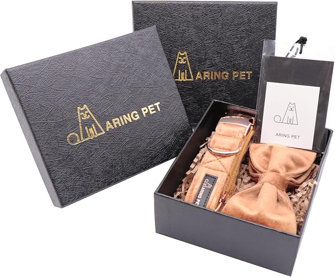 ARING PET Bowtie Dog Collar,Velvet Dog Collars with Detachable Bowtie, Yellow Soft Dog Collar,X-Large.