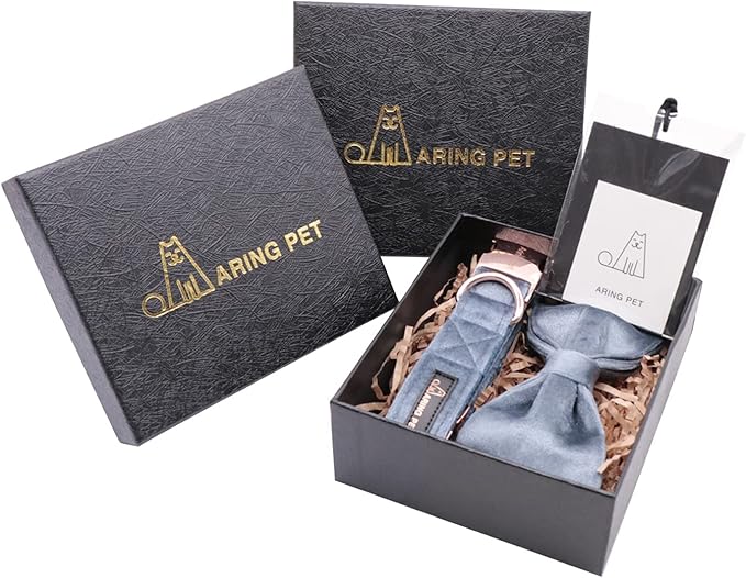 ARING PET Bowtie Dog Collar,Velvet Dog Collars with Detachable Bowtie, Cute &Comfortable Dog Collar, Blue X-Small.