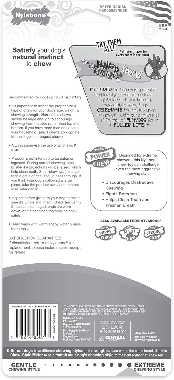 Nylabone Power Chew Classic Bone Chew Toy for Dogs, Durable Dog Toys for Aggressive Chewers, Flavor Frenzy Beef Jerky & Chicken, Large/Giant - Up to 50 lbs. (2 Count)