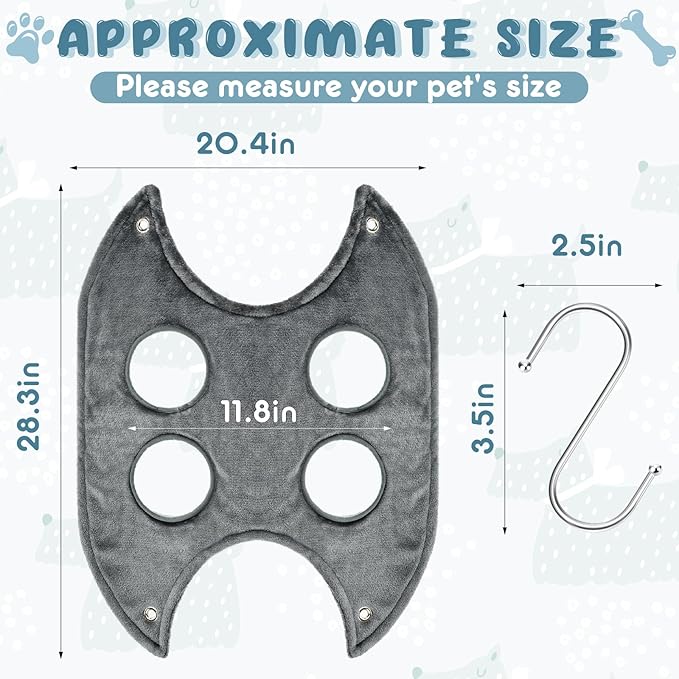 - Durable material: this pet hammock helper is made of flannel fabric, which is soft and comfortable to touch, close to skin and will release the pressure of your pets while being hung up, skin-friendly and give your pets comfortable wearing experience