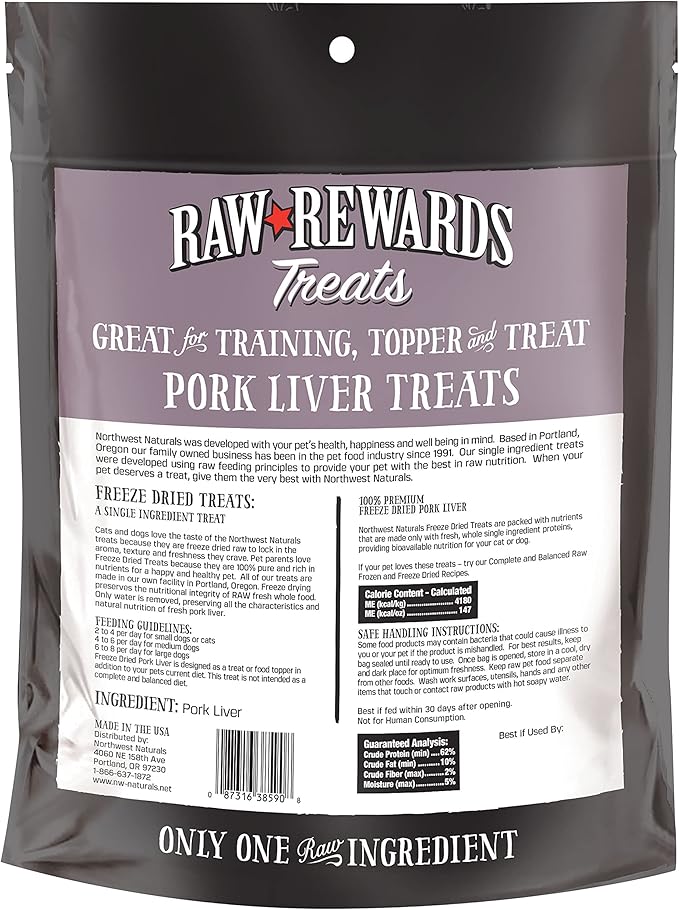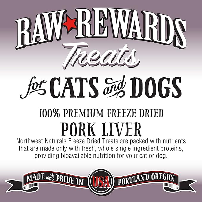 Northwest Naturals Raw Rewards Freeze-Dried Pork Liver Treats for Dogs and Cats - Bite-Sized Pieces - Healthy, 1 Ingredient, Human Grade Pet Food, All Natural - 10 Oz (Pack of 3)