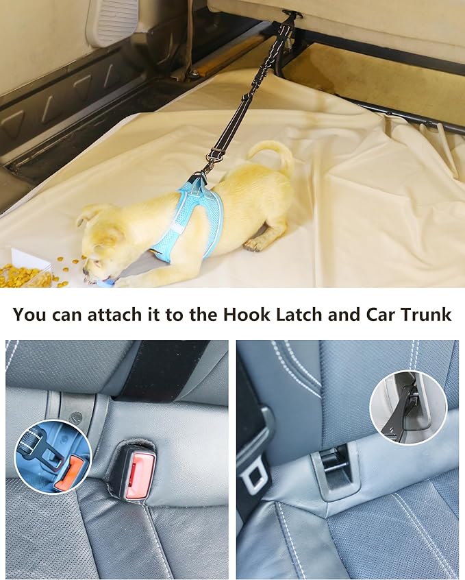 AUBELL Dog Seat Belt for car,Updated 3-in-1 Bungee Dog Car Tether with Clip Hook Latch & Buckle, Heavy Duty Dog Car Harness with Carabiner,Black