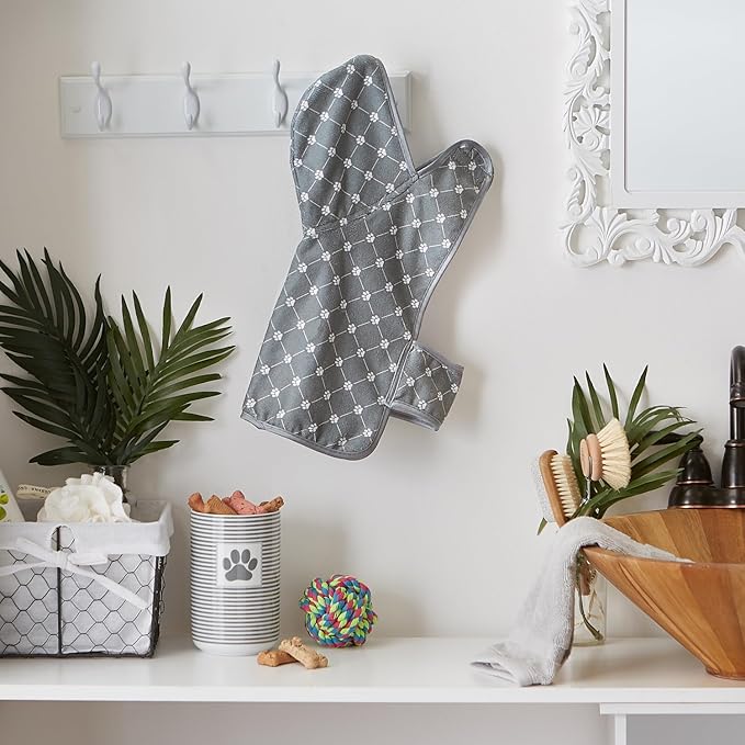 Bone Dry Pet Robe Collection, Trellis Paw Print, Absorbent Microfiber Bath Robe with Adjustable Closure for Dogs & Cats, X-Small, Gray