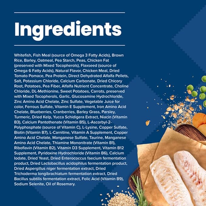 • REAL FISH FIRST: Blue Buffalo's premium dog food features high quality deboned whitefish as the primary ingredient; brown rice, cranberries and vegetables for a balanced diet; and high quality protein that promotes strong muscles