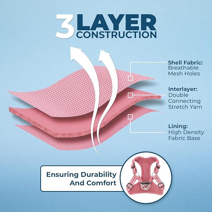 - ALL WEATHER MESH Made with a soft breathable air mesh this lightweight pet harness is perfect for walks all year round