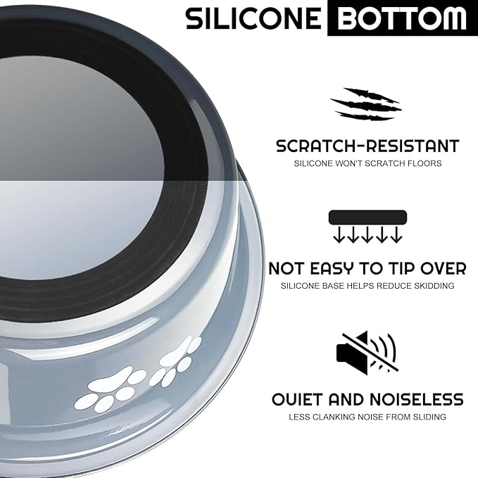 - ๐๐จ๐ง-๐ฌ๐ฅ๐ข๐ฉ&๐๐จ๐ง-๐ง๐จ๐ข๐ฌ๐: The no-smell silicone base under dog bowls not only protects your floor, but also prevents the bowl from sliding or making noise when your pet is feeding or watering.