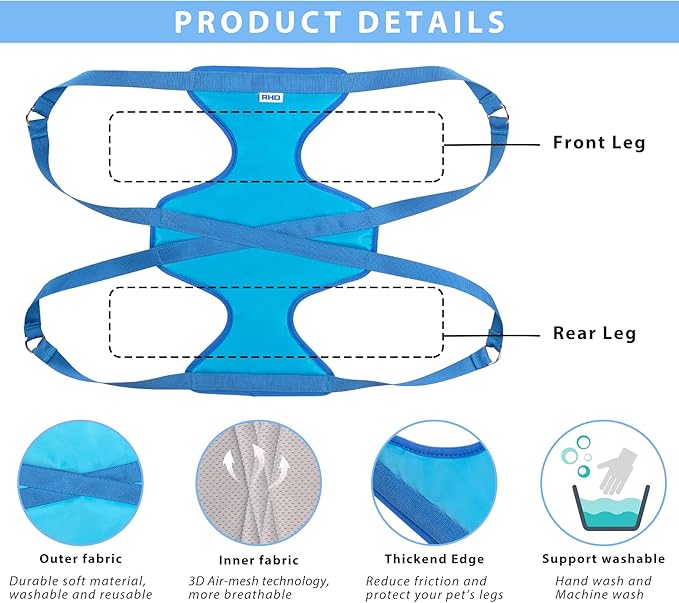 - 🐶Safety Reminder: The dog sling for grooming is easy to use at home. Put your dog’s legs into the hammock holes, wrap the dog's body well by the hammock and hang the dog in a secure place with the carabiner. You can adjust the length of the hanging straps. On first use, Pets may feel nervous and afraid. Pet groomers recommend not to place pets over 10cm of the ground or tabletop to prevent pets from falling and being injured