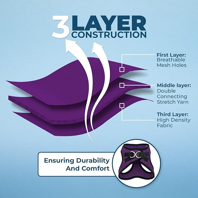 - Comfort All Year: Made with a soft and breathable air mesh, this lightweight, fast drying harness ensures maximum comfort for your pet during walks, regardless of the season