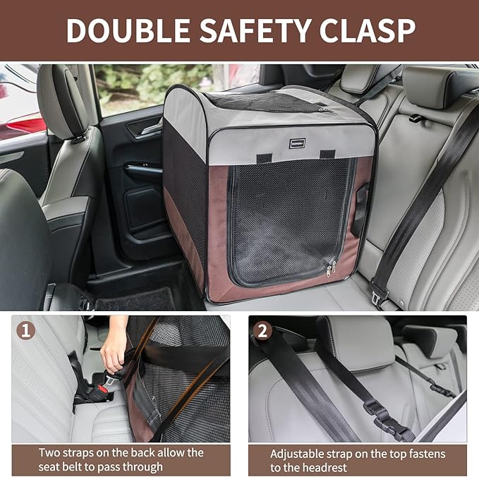 - 【THREE DOORS DESIGN】The dog cage features three doors design for convenient access. Double Zipper avoids pet’s escaping. Removable pad is comfortable and washable.