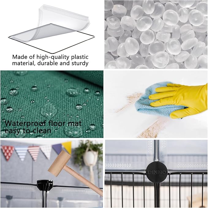 DINMO Small Animal Playpen with Oxford Mat, 24 inches Height, Pet Exercise Fence, Home Protector, Iron Mesh and Plastic Combination, Visualization, DIY, Games Hole Series, 60.2 x 24.8 x 24.8inch