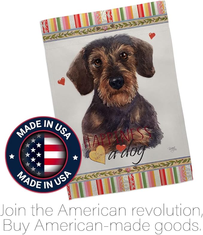 Breeze Decor Miniature Dachshund Happiness House Flag 2 pcs Pack Dog Puppy Spoiled Paw Canine Fur Pet Nature Farm Animal Creature Banner Small Garden Yard Gift Double-Sided, Made in USA