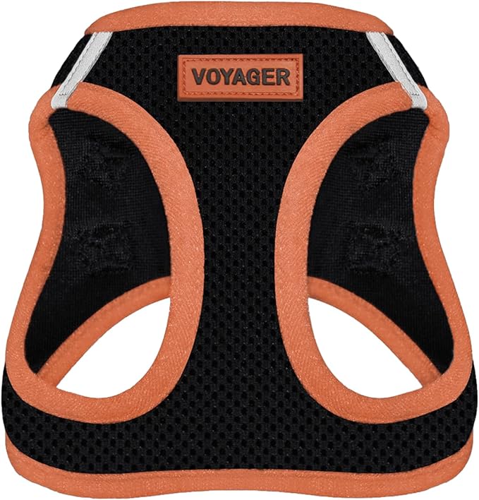 Voyager Step-in Air Dog Harness - All Weather Mesh, Reflective, No Pull Harness for Small, Medium Dogs, Cats - Secure with Hook & Loop Fastener, Buckle, Double D-Rings - Black/Orange Trim, L