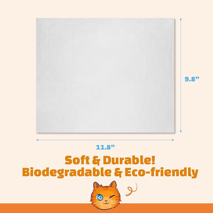- SOFT, DURABLE, LIGHTLY FRAGRANCED - Our cat wash cloth is thick and durable but soft and gentle - perfect for a pet bath! With our durable cat wash cloth, you won't need to use multiple pet wipes to clean your pet. Our cat grooming wipes are made of 100% Viscose and has a soft, cottony texture. Pets love the gentle feeling of our pet wipes for cats and dogs! Our shampoo towel is lightly fragranced with lavender which is non-toxic for cats and dogs and gives your pet a lovely, fresh clean scent.