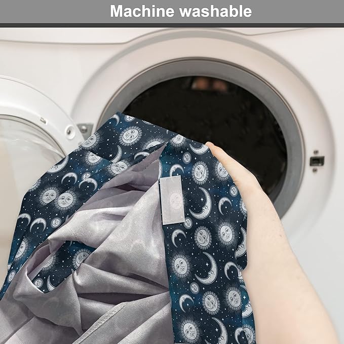 Ambesonne Sun and Moon Dog Crate Cover, Heavenly Bodies in Starry Night Sky Graphic Theme, Easy to Use Pet Kennel Cover for Cats & Medium Dogs, 24 Inch, Blue Grey