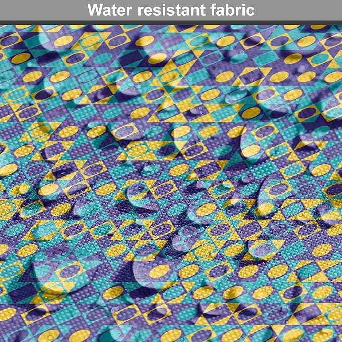 Lunarable Yellow and Blue Dog Crate Cover, Circles Squares and Triangles Mosaic Pattern with Dots Vibrant, Easy to Use Pet Kennel Cover for Medium Large Dogs, 48 Inch, Purple Sky Blue Yellow