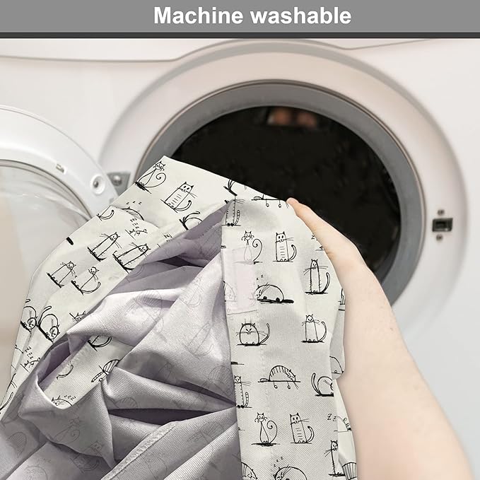 Lunarable Pet Dog Crate Cover, Funny Cat Characters Sketch Art Style Friendly Playful Kitties Lazy Fluffy Animals, Easy to Use Pet Kennel Cover for Medium Large Dogs, 42 Inch, Beige Black