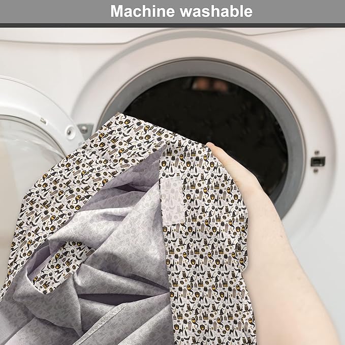Lunarable Vintage Halloween Dog Crate Cover, Halloween Cartoon Jack o' Lantern Tombstone Skulls and Bones, Easy to Use Pet Kennel Cover for Small Dogs Puppies Kittens, 18 Inch, Pale Grey
