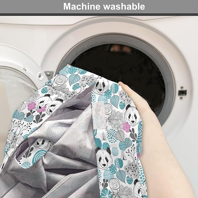 Lunarable Panda Dog Crate Cover, Portraits of Chinese Bears on Sketch Flowers and Abstract Circular Shapes, Easy to Use Pet Kennel Cover for Small Dogs Puppies Kittens, 18 Inch, Slate Blue Pink Grey
