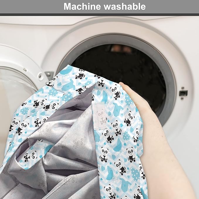 Lunarable Panda Dog Crate Cover, Chinese Bears with Stroller and Dotted Hearts on Chevron Background, Easy to Use Pet Kennel Cover for Medium Large Dogs, 42 Inch, Pale Blue Black Blue