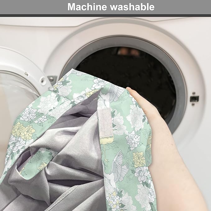Lunarable Traditional Dog Crate Cover, Japanese Cranes Peonies Cultural Aspects Symbolic of Happy Life, Easy to Use Pet Kennel Cover for Small Dogs Puppies Kittens, 18 Inch, Avocado Green Pale Green