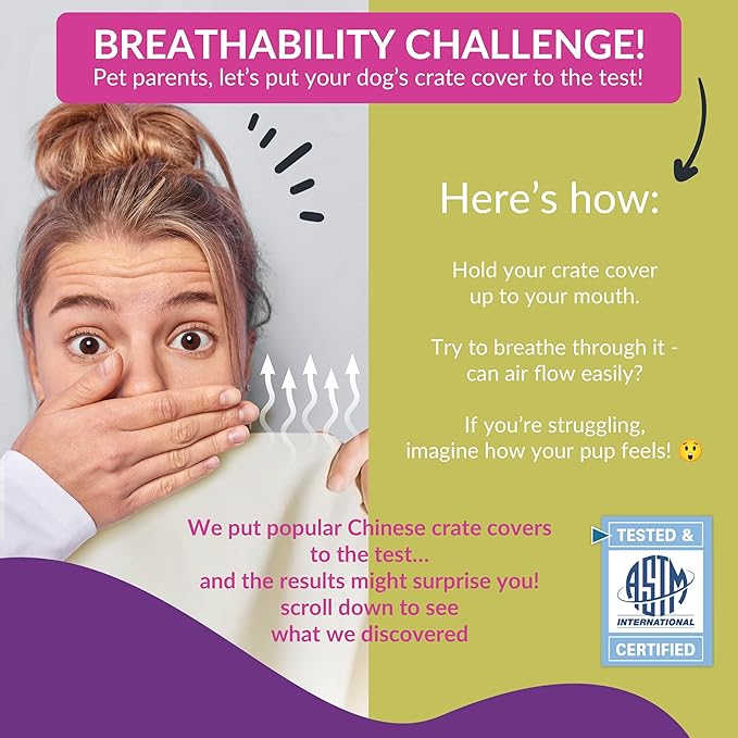 - ππ«ππππ‘πππ₯π ππ¨π ππ«πππ ππ¨π―ππ«: Clinically Tested and Rated Best Air Flow. Most Dog Crate Covers are polyester coated with toxic PVC that are Not Breathable despite false claims. Our Covers were tested by a certified government laboratory and had the highest air flow score. They are made for Indoor use and are never coated for maximum ventilation. WARNING: Never completely close your Crate Cover as it blocks airflow and creates a low oxygen environment which is not healthy for your dog