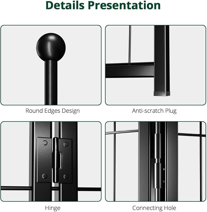 - Escape-Proof Design: The 32" high dog pen prevents escape attempts. The gravity automatic invisible door lock stops pets from opening the door on their own. Leave your pet in a safe area without worrying about them escaping