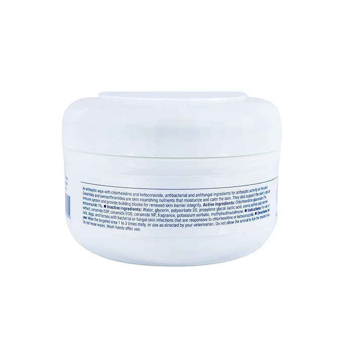 CeraSoothe CHX+KET Antiseptic Wipes Formulated for Dogs, Cats, & Horses – Chlorhexidine & Ketoconazole Medicated Pet Wipes – Antibacterial & Antifungal Skin Care for Pets – 30 Count