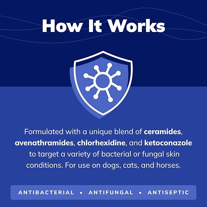 - Antiseptic Formula: This antiseptic contains chlorhexidine and ketoconazole, which help combat bacterial and fungal infections for dogs