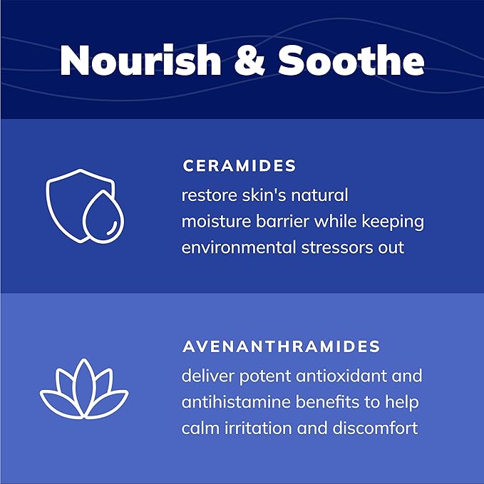 - Nourishing on Skin: Ceramides and Avenanthramides are skin nourishing nutrients that moisturize and calm the skin