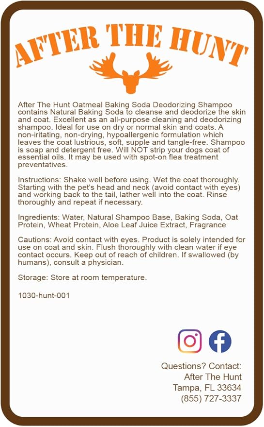 After The Hunt Oatmeal Baking Soda Deodorizing Dog Shampoo 8 oz