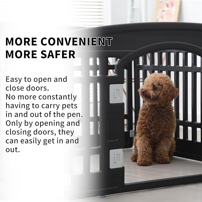 - SECURE AREA: Give your pet an entertainment space that belongs to it.Pet playpen tall enough for a small pet to reach into the enclosure, puppy playpen keeps your pets safe from others.Our pet fence is made of safe, high-quality plastic, and is artificially trimmed, smooth and burr-free, so You don’t have to worry about your pet getting hurt.