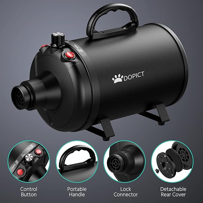 - 5.2HP/3800W POWERFUL BLOW FORCE: The powerful motor develops 5.2 HP giving you more than enough oomph to quickly dry even heavier dog coats. Powerful horsepower, remove dust, allergens and dead fur from you dog’s coat, they’ll save you money!