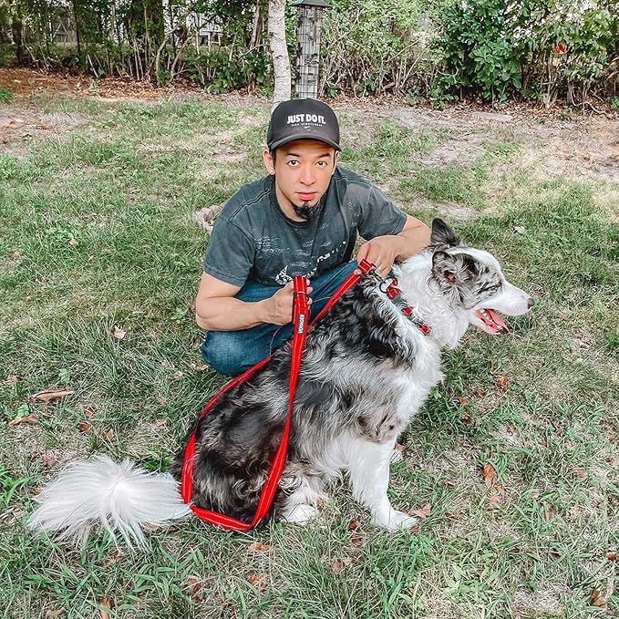Voyager Reflective Dog Leash Collar Set with Neoprene Handle Supports Small, Medium, and Large Breed Puppies, Cute and Heavy Duty for Walking, Running, and Training - Red, M