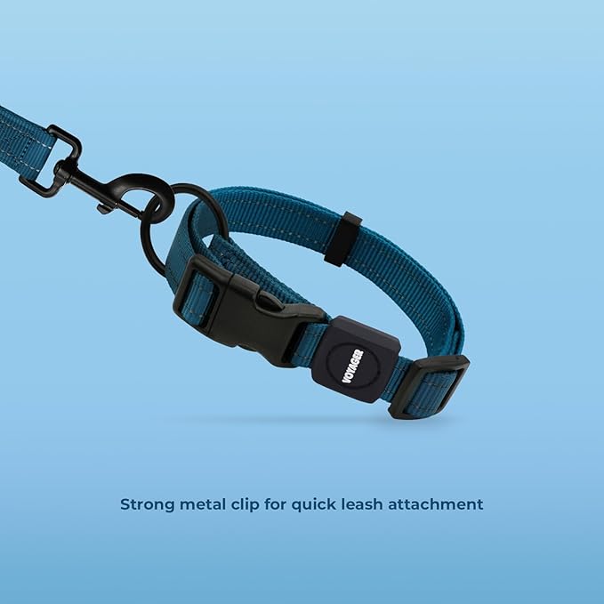 Voyager Reflective Dog Leash Collar Set with Neoprene Handle Supports Small, Medium, and Large Breed Puppies, Cute and Heavy Duty for Walking, Running, and Training - Blue, S